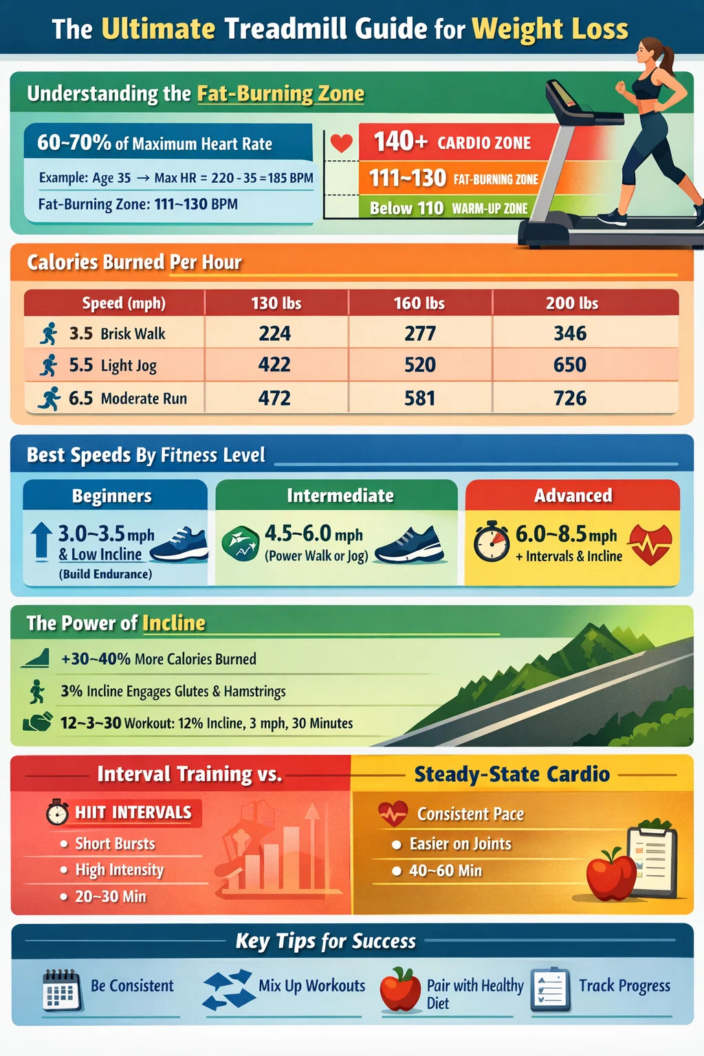 Wenn Sie die kurze Antwort wollen: das Beste Laufband Die Geschwindigkeit zum Abnehmen liegt zwischen 3,5 und 4,5 Meilen pro Stunde beim Gehen oder 5 bis 6 Meilen pro Stunde beim Joggen – abhängig von Ihrem aktuellen Fitnesslevel. Diese Bereiche halten Ihre Herzfrequenz lange genug in der Fettverbrennungszone (ungefähr 60–70 % Ihrer maximalen Herzfrequenz), um sinnvolle Kalorien zu verbrennen, ohne in den ersten zehn Minuten auszubrennen. Allerdings ist die „beste“ Geschwindigkeit keine feste Zahl. Sie variiert je nach Körpergewicht, Alter, Fitness-Grundzustand und wie lange Sie die Anstrengung durchhalten können.